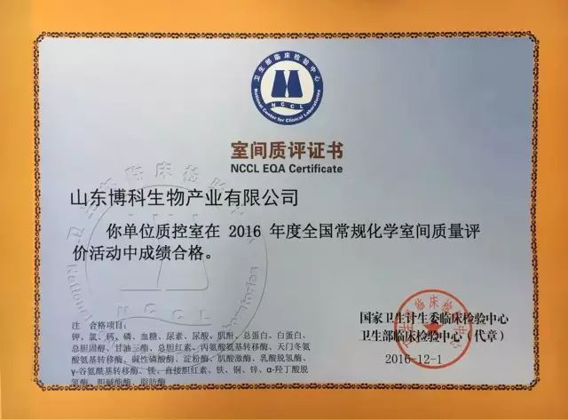 2016年以来,BIOBASE博科多次参加国家卫生计生委临床检验中心组织的室间质评活动,且成绩优异。